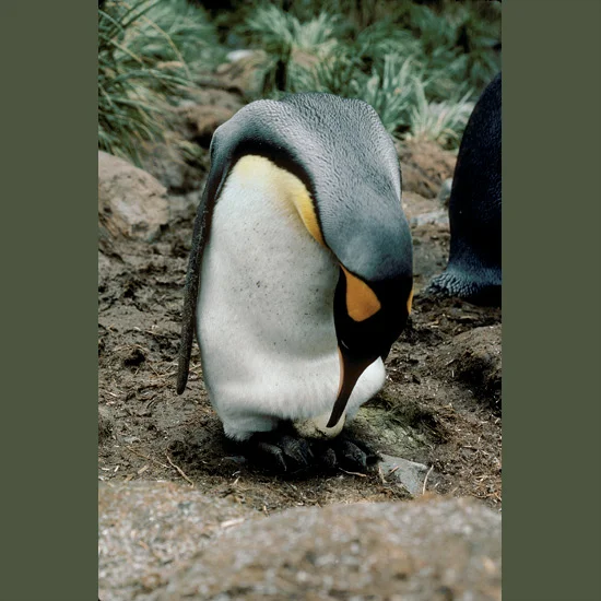 Smaller, slenderer look-alikes (with similar looks of impassive solemnity) are king penguins, from which emperors are believed to have evolved. Kings have long breeding cycles that take place in warmer seasons. Parents take turns through the Antarctic summer incubating their single egg on their feet, learning to shuffle along without losing their precious burden—and wooly chicks are reared through the winter, fledging the following summer. King penguins are deep divers, too, recorded over 1,640 feet (500 m) down, staying for 6–7 minutes. They breed colonially on subantarctic islands, sometimes in huge numbers.