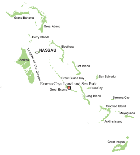 Only way to visit is by boat, in waters acclaimed as best cruising in the western hemisphere. One way to arrange this is to fly from Fort Lauderdale, Florida, to Staniel Cay (three James Bond movies were shot there) where there is lodging and charters can be arranged. Or fly from Miami or New York to Nassau and take a boat tour from there.