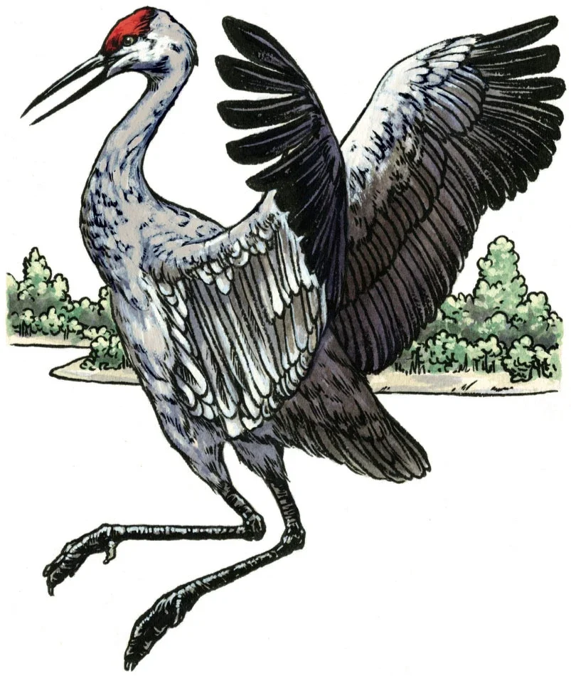 Crimson-crowned Florida sandhill cranes