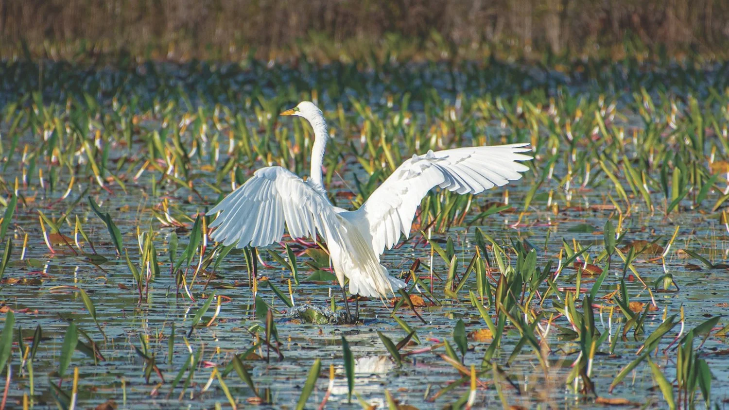 Photo: A white heron dries its wings in the Okefenokee Swamp, a vast wildlife refuge currently under threat of mining near its boundaries. Credit: Deborah Ferrin via Shutterstock